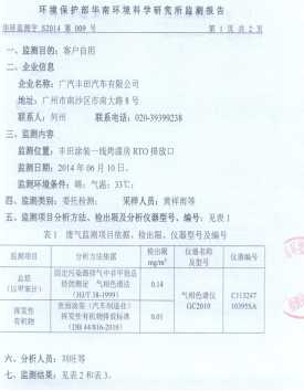 期间广汽丰田请国家认可第三方检验机构-华南环境科学研究所做了俐峰VOC在线监测设备的比对测试,测试结果完全符合环保部门的要求(数据偏差<5%)。